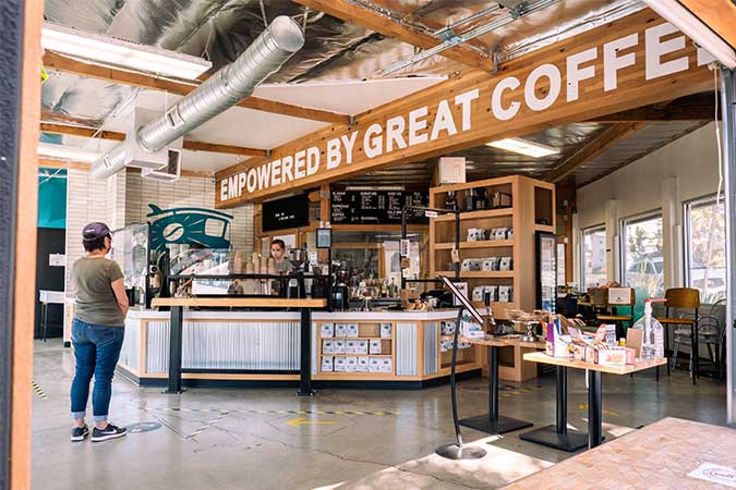 We opened our Morena Roasting Facility in 2012 to support the increase in business and distribution with the addition of our second location, Little Italy. Soon after, we opened a little coffee cart inside the roasting facility where folks could taste our delicious coffee while watching the roasting process. In 2020 we transformed this location from “that little coffee cart” into a beautiful, fully finished cafe. During the week, when you walk in, you'll be greeted with the smell of freshly roasted coffee and the hustle and bustle of our center of production. Make sure to take a peek through the windows inside the cafe to catch a glimpse of our production team, hard at work, and our QC team making sure each coffee is 100%.